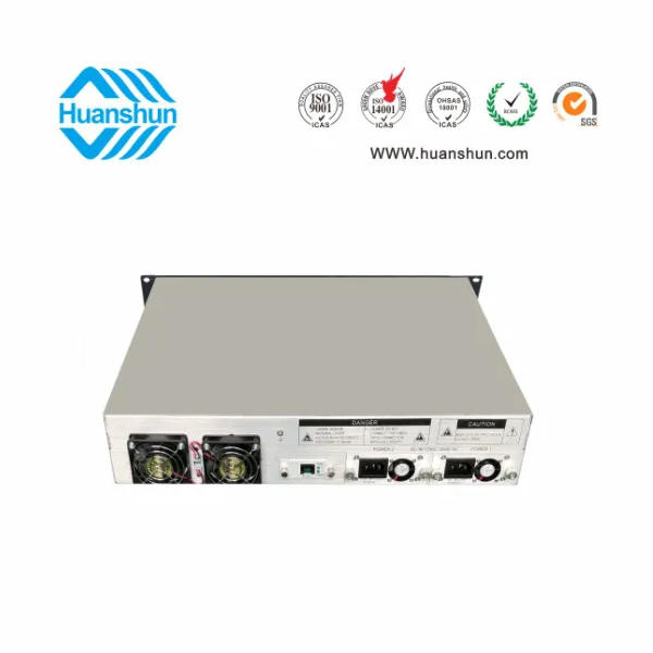 大功率光纖放大器EYDFA | YGF1508-16C | 19 " 2U/3U標(biāo)準(zhǔn)機(jī)箱,-5 ~ +10 d Bm輸入,8路標(biāo)稱規(guī)格(16、17、18、19、20、21、22、23dBm)放大輸出,并支持下調(diào)-2dB,安全連接模式,NF ≤ 5dB(0dBm時(shí));內(nèi)置FWDM合波器,插播損耗 ≤ 1dB;雙模塊熱插撥電源,AC90 ~ 255V或DC-48V供電,RJ45標(biāo)準(zhǔn)網(wǎng)管(支持SNMP、WEB) |