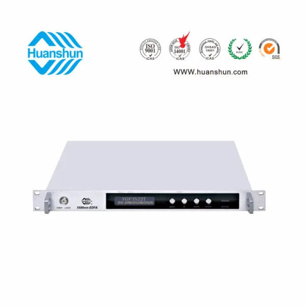 YGF15XXT光纖放大器采用成熟的1550nm模塊化技術,核心部件選用JDSU、BOOKHAM、FITEL等進口原裝泵浦激光器,全新光無源器件,帶光隔離器的高線性、低噪聲分布反饋式泵浦激光器,結合微處理器技術和ATC、APC自控技術,從而保證各項性能優良的技術指標。該光放大模塊具有噪聲系數小、輸入輸出隔離度高、非線性失真小等 特點。內置微處理器監測泵浦激光器的所有工作狀態參數,工作參數由面板(LCD)顯示,一旦激光器的工作參數偏離設定值的允許范圍,微處理將會自動關斷激光器電源,并紅燈閃爍提示告警,面板顯示屏提示故障原因。本機插撥式應答器,支持WEB和SNMP,可實現設備的網絡管理及遠程監控。